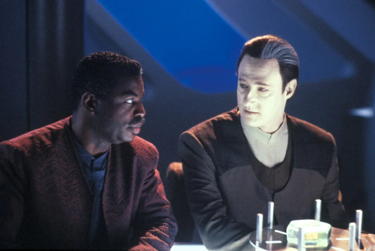- В ролях актеры: Патрик Стюарт, Джонатан Фрейкс, ЛеВар Бёртон, Марина Сиртис, Брент Спайнер, Майкл Дорн, Гейтс МакФэдден, Маджел Бэррет